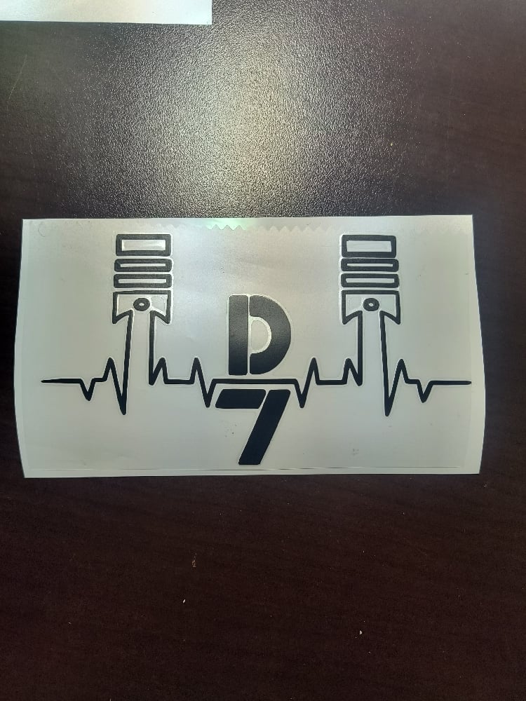 D7 piston heartbeat sticker 3x6 and available in all colors